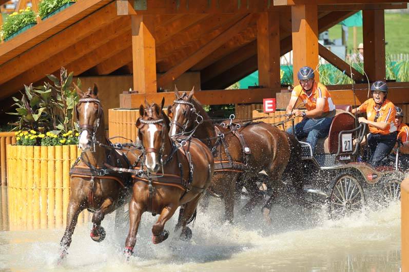 “Het was te verwachten dat de Duitsers zouden aanvallen,” vertelt bondscoach Harry de Ruyter (Kessel, Lb.). “Zij stonden voor de marathon op de vierde plaats en wilden uiteraard voor een podiumplaats gaan. Wij mochten geen fouten rijden om onze koppositie vast te houden en ik ben blij dat dat gelukt is. Het is jammer dat IJsbrand van goud naar zilver is gegaan, maar de verschillen waren echt minimaal. Ik ben ook heel blij voor Koos dat hij brons heeft gewonnen. Theo is goed overeind gebleven in de marathon, dit moest ook om zijn dressuurscore zeker te stellen voor het landenklassement.”