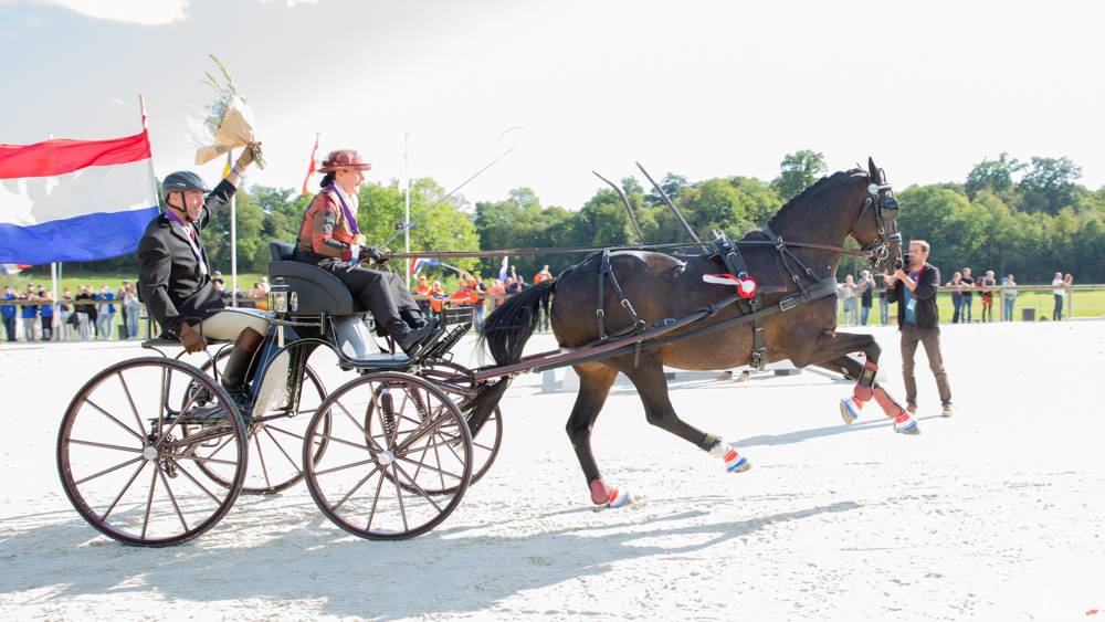“De dressuur liep zoals altijd heel stabiel. Het is dan misschien niet super spectaculair maar we maakten geen fouten. Na de marathon viel er echt iets van me af. Ik was daar heel erg mee bezig geweest en ik had de hindernissen heel goed in mijn hoofd. We hebben de marathon op onze ervaring gedaan. Ik moest zelf wel even het vertrouwen krijgen om weer te beginnen. Maar vanaf hindernis 1 wist ik dat het kon. Het gevoel was meteen als vanouds en ik dacht ‘houden zo’. Toen zijn we meteen voor de kortste weg in hindernis 2 gegaan. We hebben voluit gereden. In hindernis 5 kozen we voor een korte route en toen had ik even een hapering die veel tijd kostte. Toen dat gebeurde sloot Axel zich heel even voor me af, maar daarna ging-ie weer zoals altijd.”
