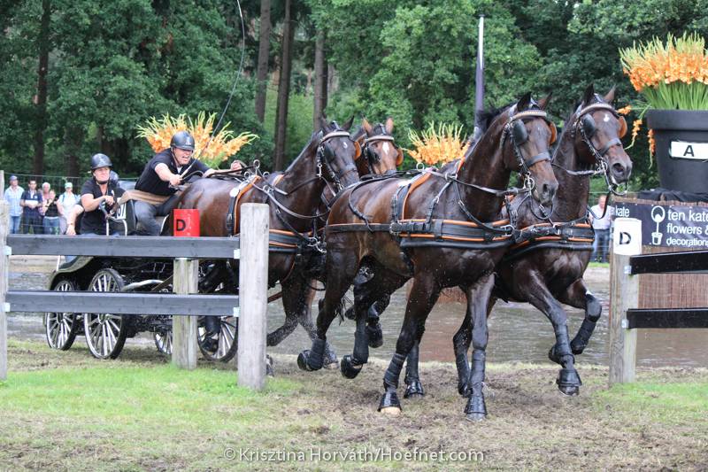 Voor Theo Timmerman verliep de marathon teleurstellend toen hij op de eerste hindernis al in de problemen kwam. Eén van zijn voorpaarden gleed uit en kwam onder het hekwerk van de hindernis terecht. Het paard lag dusdanig vast dat het uitgespannen moest worden door de grooms, waardoor Timmerman enorm veel tijd verloor en stafpunten opliep. Timmerman: “Dan ben je weg. Naast al de strafpunten en de ongunstige tijd in deze hindernis, ben je ook nog eens je concentratie kwijt voor het vervolg van de marathon. “