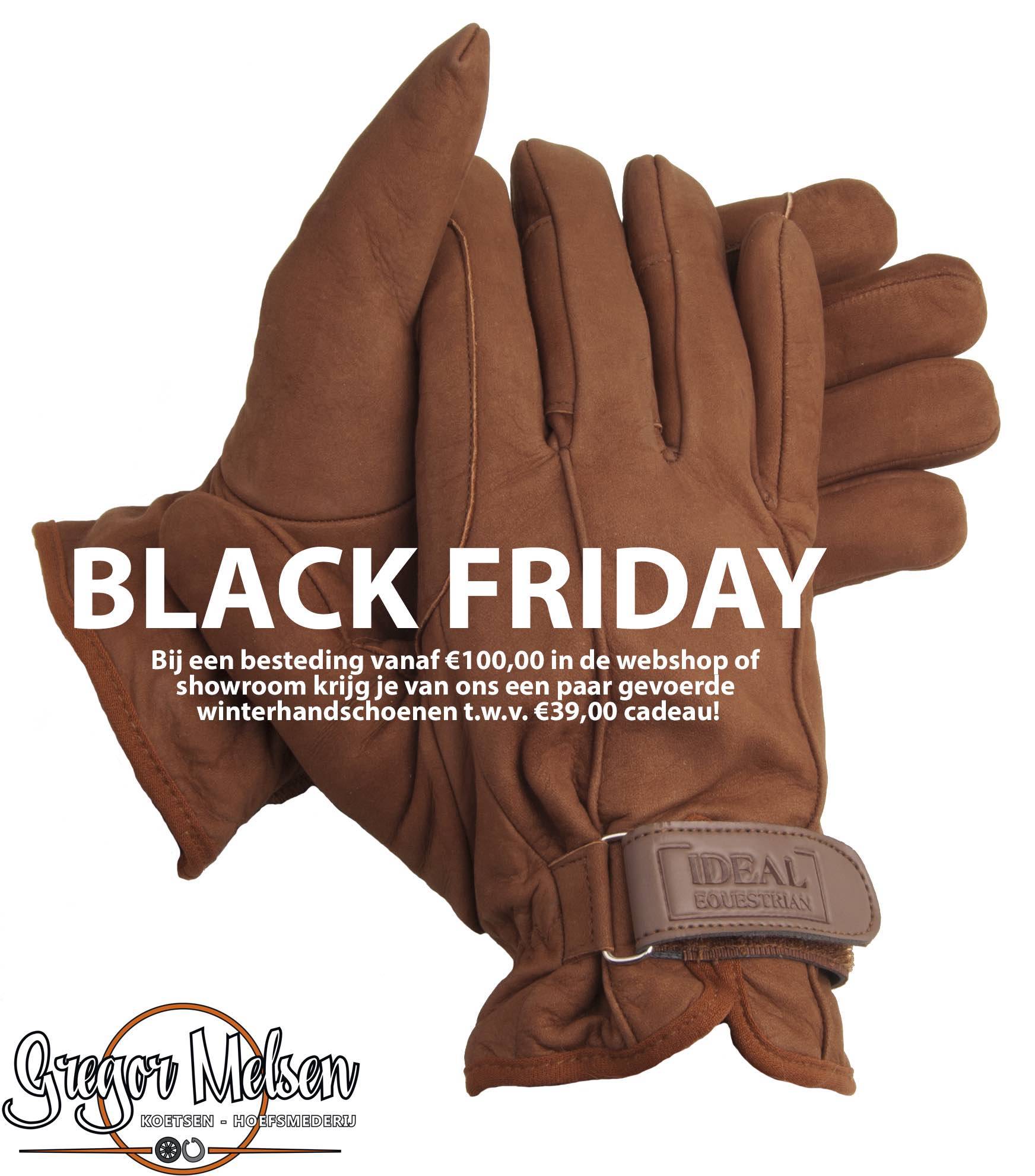 Van donderdag 26 november 17:00 uur tot en met zondag 29 november 00:00 uur is het Black Friday bij Gregor Melsen! Tijdens Black Friday krijg je bij een besteding vanaf €100,00 in de webshop of in de showroom* in Numansdorp een paar heerlijk warme gevoerde winterhandschoenen van het merk Ideal Equestrian t.w.v. €39 kado!Bij Gregor Melsen ben je aan het juiste adres voor de aanschaf van een nieuwe koets, marathonwagen, trailer of aanhangwagen. Stel je nieuwe koets geheel naar wens samen! Je kunt er tevens terecht voor al je onderhoud en reparaties aan koets, trailer en aanhanger.