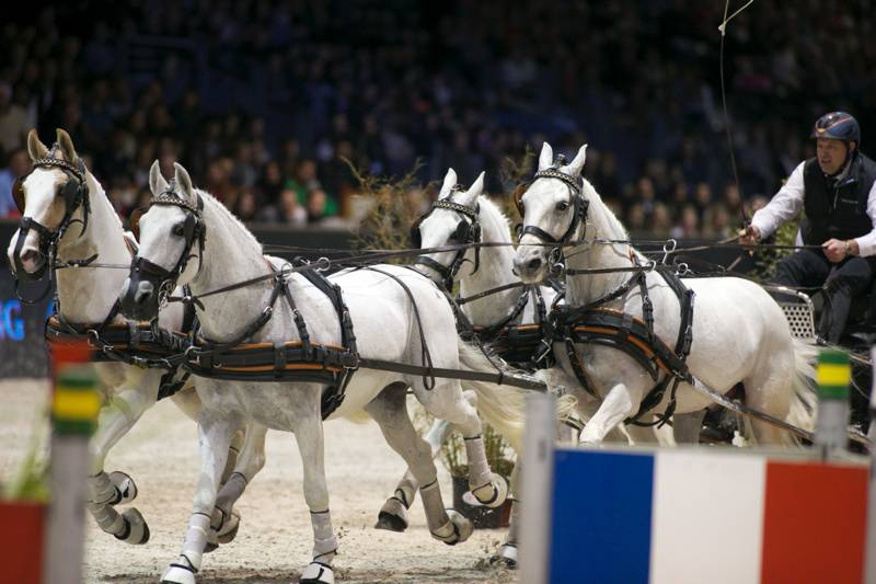 IJsbrand Chardon (Schipluiden) gaat na een fantastisch gereden rit aan de leiding van de Wereldbekerfinale vierspannen in het Franse Bordeaux. Chardon bleef de Australiër Boyd Exell en de Duitser Christoph Sandmann voor. Koos de Ronde (Zwartewaal) had fikse pech en werd vijfde.Chardon ging als eerste van de drie favorieten van start in het moeilijke parcours van de Zweedse parcoursbouwer Dan Henriksson. De viervoudig Wereldkampioen stuurde zijn vierspan Lipizzanerpaarden en één KWPN-er foutloos en razendsnel en foutloos door de piste, aangemoedigd door het vele publiek dat ondanks het late tijdstip in grote getale aanwezig was. “Mijn tactiek vanavond was om niet te veel toe te geven,” vertelt Chardon. “Deze eerste wedstrijd telt mee voor de Wereldbekerfinale op zondag, waarbij vijftig procent van het verschil in de score van de eerste wedstrijd (omgerekend in seconden) tussen elke menner en de winnaar, wordt meegenomen. Dus ik wilde zo dicht mogelijk bij de tijd van de winnaar komen en geen risico nemen om me de eerste dag al uit de wedstrijd te rijden. Dat ik heb gewonnen is natuurlijk super! Ik had Aladin weer voorop staan en ik reed een makkelijk rondje, ik ben super tevreden!”