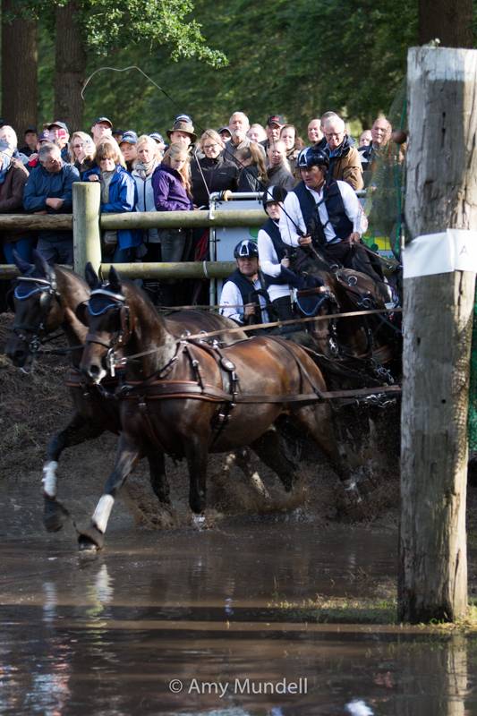 Im Zusammenhang mit der Pony-WM war die Reihenfolge der Prüfungen beim Outdoor Brabant für die Vierspänner angepasst worden. Am Donnerstag fuhren die Fahrer ihre Dressurprüfung, worauf am Freitag das Hindernisfahren folgte und der gestrige Marathon bildete den Abschluss. Das Gelände des Landgutes De Prinsenhoeve wurde in den vergangenen Tagen durch die großen Regenmassen arg ramponiert und glich zuletzt eher einem Moorbad. Für die Vierspänner wurde das letzte Hindernis aus dem Wettbewerb genommen und die erlaubte Zeit in der B-Strecke wurde um 3 Minuten erweitert.