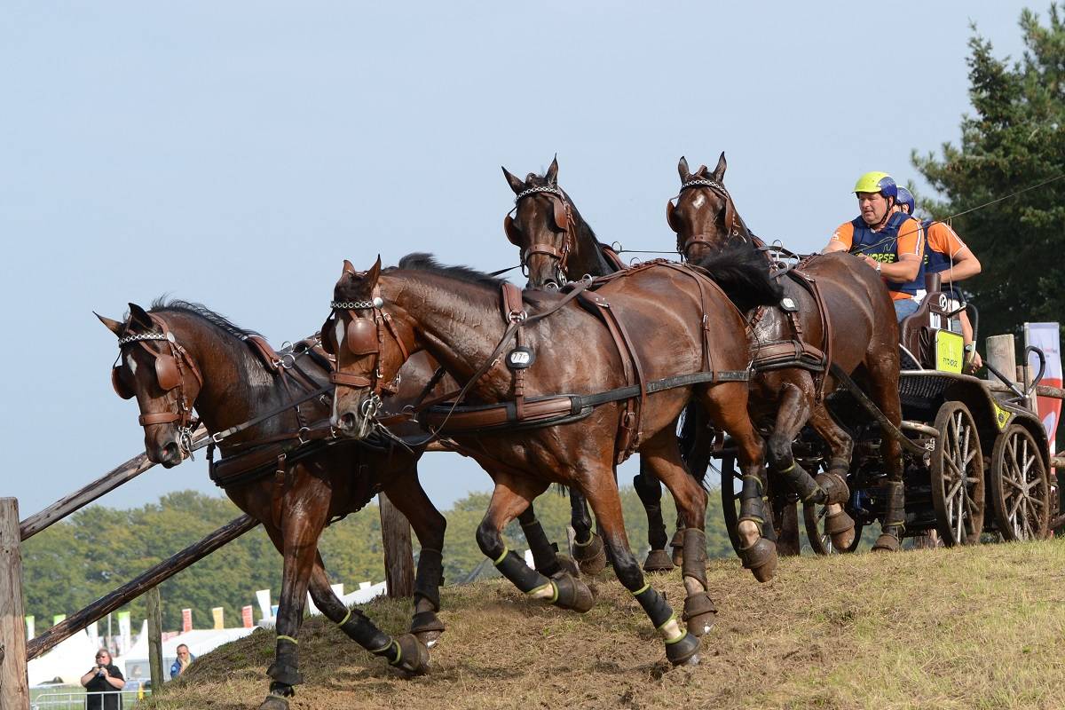 Die Marathonprüfung bei den Pony-Vierspännern konnte an den Top Drei und der Führung von Bram Chardon nichts verändern, außer dass Chardon seine Führung noch mehr ausbauen konnte. Joey van der Ham (NED) fuhr einen starken Marathon, wurde in dieser Prüfung dritter und steht in der Gesamtwertung nun auf Platz vier vor dem abschließenden Kegelfahren. Dieter Höfs (GER) fuhr sich mit einem guten Marathon von Platz acht nach der Dressur auf Platz fünf in der kombinierten Wertung, Michael Bügener konnte ebenfalls einige Plätze gutmachen und steht nun auf Platz neun.