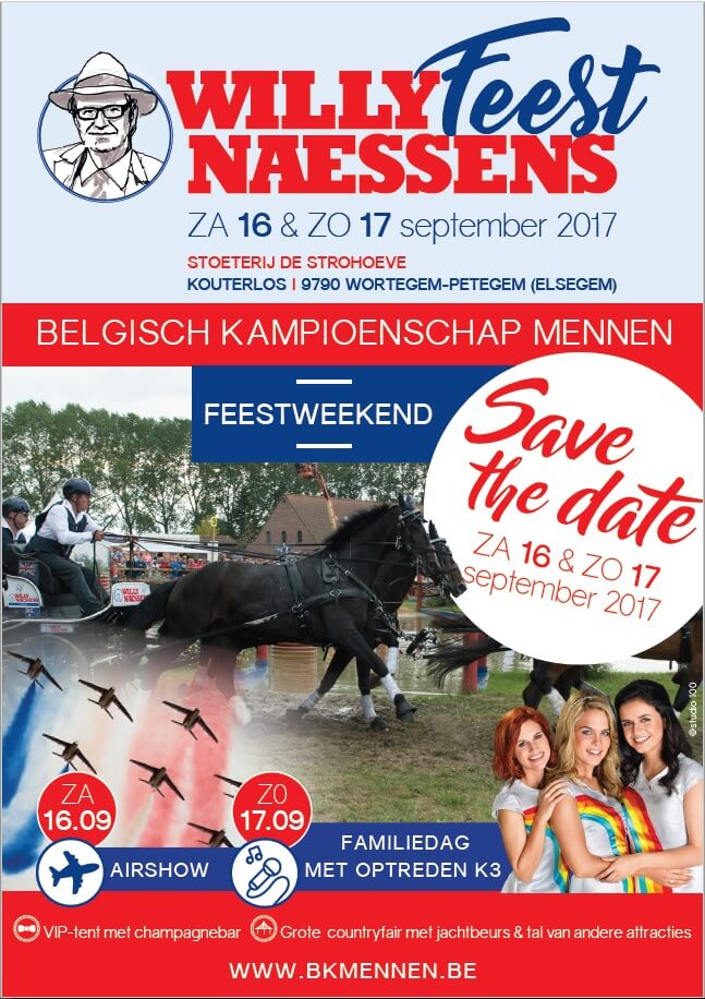 Op zaterdag 16 en zondag 17 september organiseert ondernemer en paardenliefhebber Willy Naessens het Belgisch Kampioenschap Mennen, op en rond zijn stoeterij ‘De Strohoeve’ in Elsegem. Meer dan zestig menners strijden om de titel van ‘Belgisch Kampioen’.Ook meervoudig en wereldkampioen Boyd Exell doet mee aan de wedstrijd. Hij kan de wedstrijd om het Belgisch Kampioenschap, als niet-Belg, niet winnen maar het wordt zeker een spektakel.