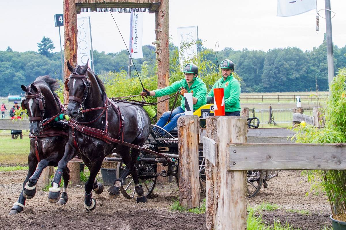 Bij de tweespannen was het pech voor de Fransman Franck Grimonprez na zijn mooie dressuurscore. Direct in de eerste hindernis reed hij de A-poort van de achterkant en herstelde dat niet, waardoor hij geëlimineerd werd. Ook pech voor Lars Schwitte (GER) die zich vastreed en hulp van derden nodig had om los te komen. Zijn landgenoot Dennis Schneiders reed razendsnel door de hindernissen. Hij klokte in twee hindernissen de snelste tijd en won de marathon. Ook Ewoud Boom (NED) was ontketend. Hij zat Schneiders op de hielen en was in de moeilijke hindernis 4 het snelst en in de waterpartij. Ewoud werd tweede en was daarmee de beste Nederlander. In het klassement is hij opgeklommen naar de 6e plaats. Dennis Schneiders staat daarin 2e. Het klassement wordt aangevoerd door Martin Hölle die een sterke marathon reed en daarin 4e werd. De regerend wereldkampioen heeft een enorme voorsprong van 13 punten.