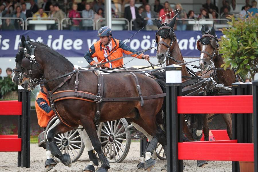 ‘De publieke belangstelling viel iets tegen, maar het is natuurlijk een donderdagavond, maar wel erg enthousiast. Ik had een mix van indoor- en outdoorpaarden en dat liep fijn.’ Ook Theo Timmerman had zijn paarden prima aan het lopen en eindigde op een halve seconde achterstand als tweede, terwijl viervoudig wereldkampioen Chardon iets meer moeite met zijn paarden had in de eerste ronde maar zich prima herstelde en derde werd. Mark Weusthof zette weliswaar nagenoeg dezelfde tijd als Timmerman neer, maar twee afgereden balletjes hielden hem uit de top-drie.