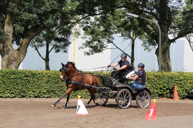 Eefje Harskamp won de wedstrijd bij de tweespan paarden en Nico Avezaath de rubriek vierspan paarden.