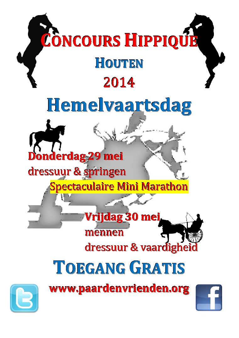 Jaarlijks organiseert landelijke rijvereniging De Paardenvrienden het Hemelvaartsconcours in Houten.Dit jaar wordt op 29 mei een outdoor minimarathon gehouden en op 30 mei een dressuur- en vaardigheidswedstrijd.