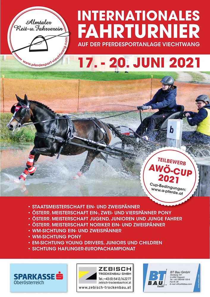 Aufgrund der Absage von CAI Altenfelden (17. - 20. Juni) hat die Organisation von Viechtwang ihre Veranstaltung an den freien Platz im Kalender verschoben.Im Rahmen dieses Turniers werden auch die Staatsmeisterschaften der Ein-und Zweispänner sowie die Österreichischen Meisterschaften der Pony Ein-, Zwei- und Vierspänner sowie die Österreichischen Meisterschaften für Jugend, Junioren und Junge Fahrer und die Österreichischen Meisterschaften für Noriker Ein- und Zweispänner ausgetragen.