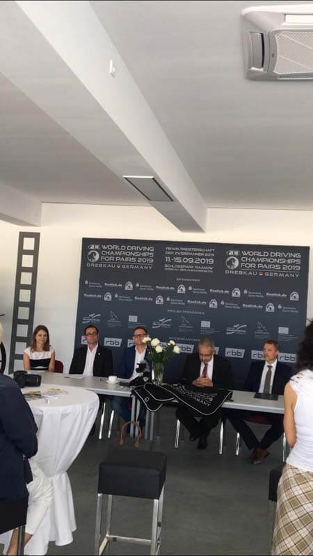 Heute Vormittag hat die Pressekonferenz zur Weltmeisterschaft der Zweispänner Pferde stattgefunden, die vom 11. bis zum 15 September im brandenburgischen Drebkau ausgetragen wird. Das Organisationskomitee unter der Leitung des Gastgebers und internationalen Zweispännerfahrers Torsten Koalick erwartet etwa 80 Fahrer aus 20 Nationen.Dem Reit- und Fahrverein in Drebkau gehören mehrere Fahrer an, die sowohl auf nationaler als auch auf internationaler Ebene bereits erfolgreich unterwegs sind und das Organisationsteam hat sich sehr über die Vergabe der WM gefreut.