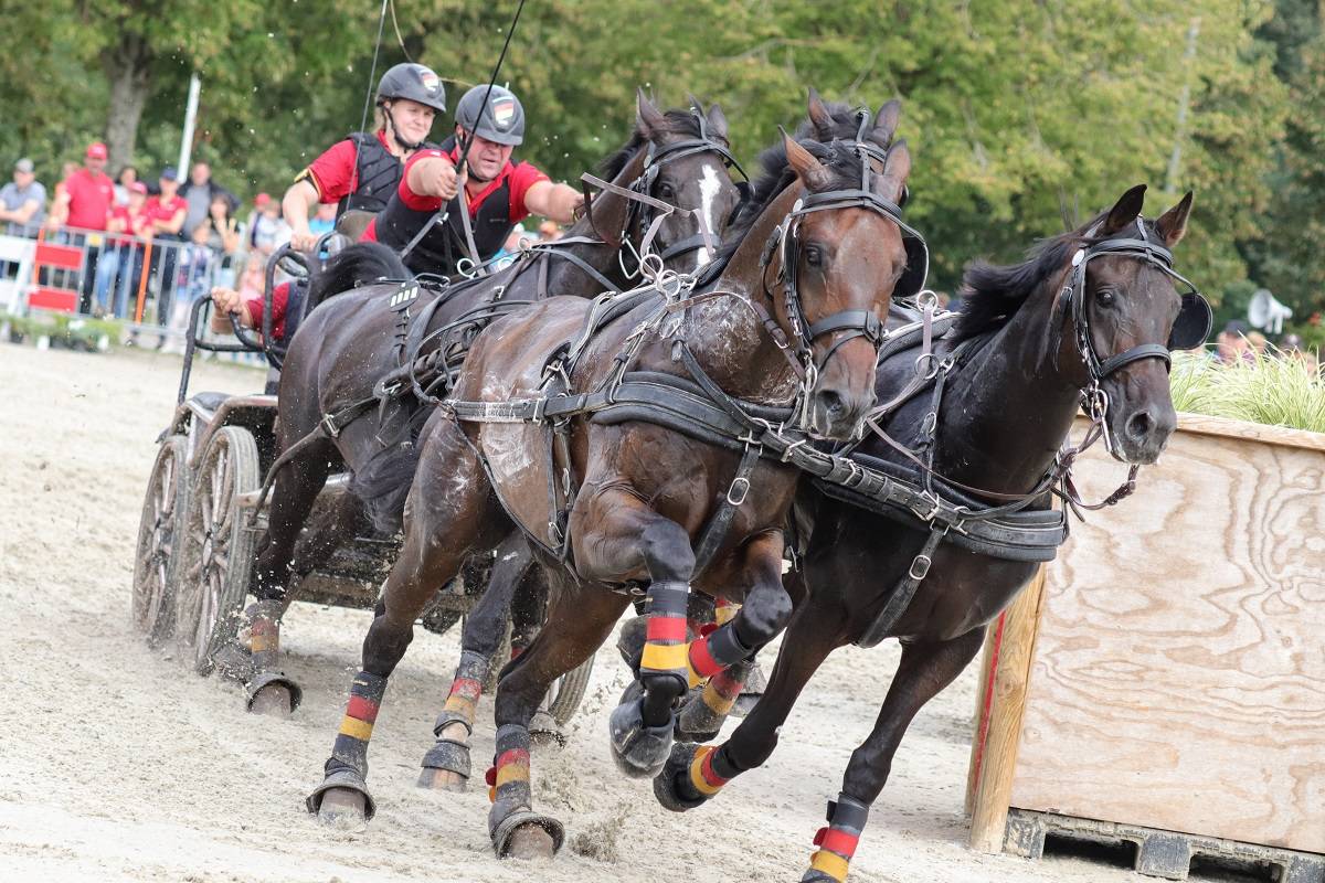 Der heutige Vierspänner-Marathon brachte einen spannenden Kampf, bei dem die Hinderniszeiten immer schneller wurden. Der Kampf um den Sieg in diesem Wettbewerb ging schließlich zwischen Michael Brauchle und dem Niederländer Koos de Ronde aus.