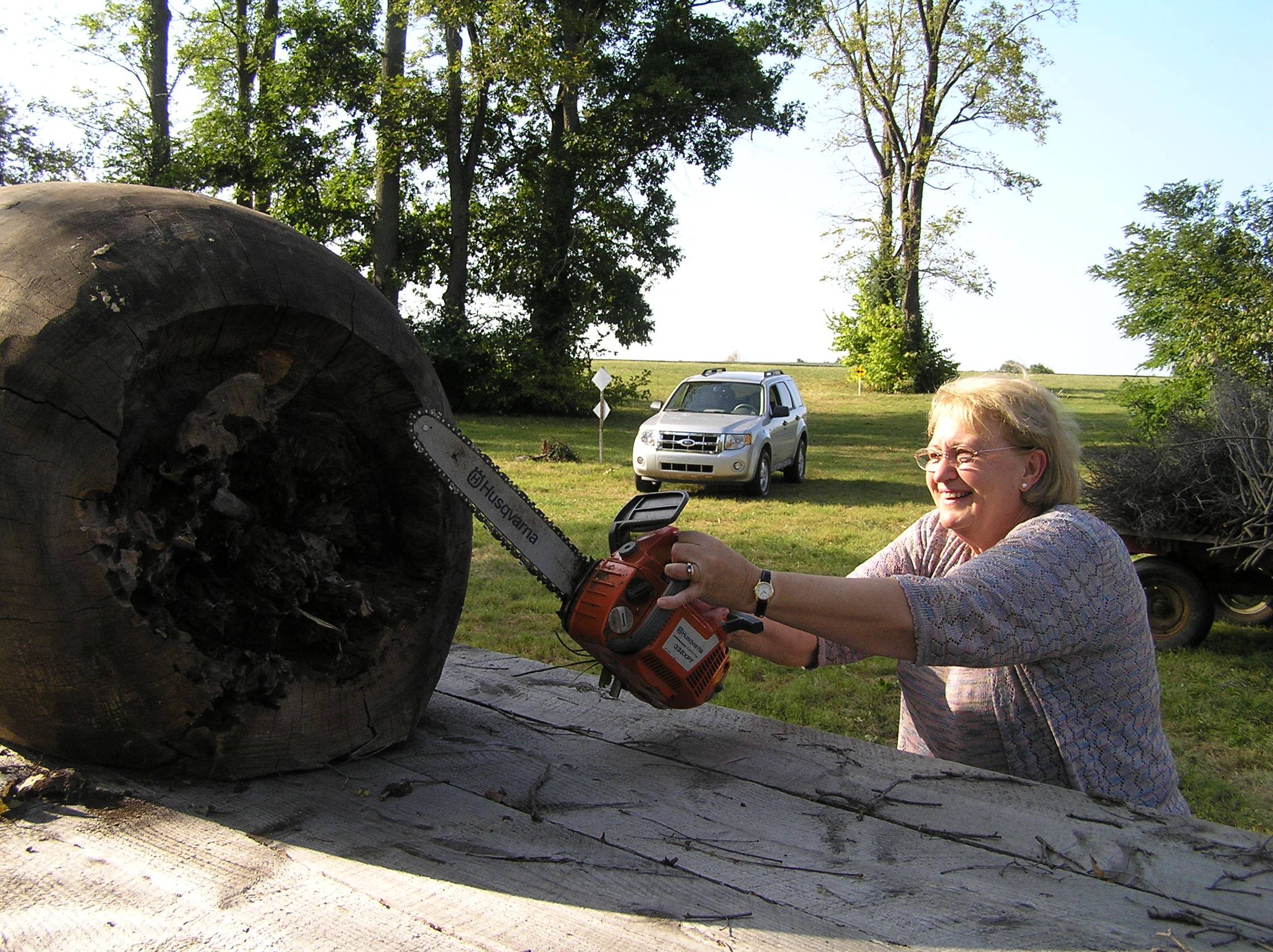 Diana nahm die Kettensäge 'just for fun' während des Turniers 2009 in Kentucky in die Hand