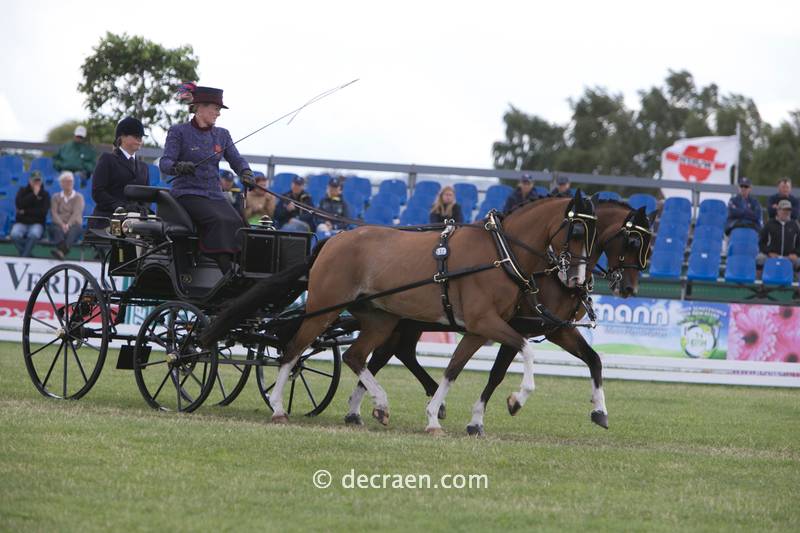 In het onderdeel dressuur bij de ponytweespannen was het podium vandaag volledig Duits. De hoogste score werd gereden door Dieter Baackman, 41,98 strafpunten. Rodinde Rutjens boekte het beste Nederlandse resultaat. Haar score van 52,03 was goed voor de zesde plek. Yvonne Houten was met 54,72 de tweede Nederlandse en viel met een elfde plek net buiten de prijzen._111365.jpg)