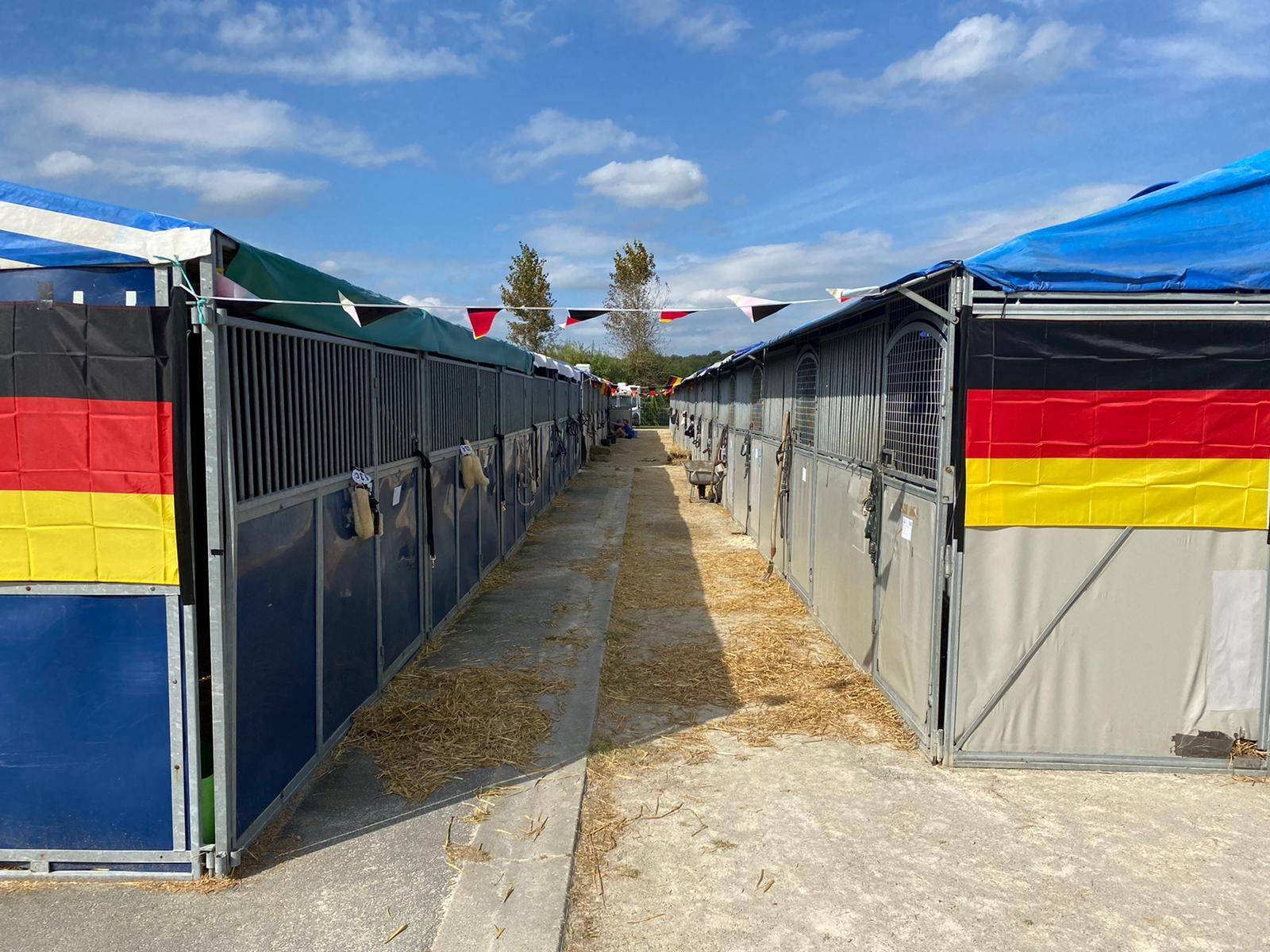 Nach Ankunft in Le Pin wurde sich zunächst um eine angemessene Unterkunft der Ponys gekümmert, die dem deutschen Team zur Titelverteidigung verhelfen sollen. Der deutsche Stalltrakt wurde selbstverständlich sogleich schön dekoriert.