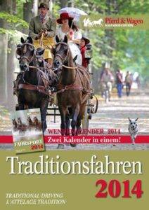 Auch für das Jahr 2014 hat die Pferd & Wagen Redaktion für alle Fahrsportbegeisterten einen „Wendekalender“ herausgebracht. Er ist mit insgesamt 24 Fotografien bestückt: Von einer Seite sieht man 12 Motive aus dem Sport. Dreht man den Kalender herum, erscheinen 12 Motive aus dem Traditionsfahren. Zur hohen Qualität und Vielfalt der Fotografien haben die Pferd & Wagen Autoren Sonja Bauer, Claudia Meier, Jürgen Schwarzl, Thomas Sagkob und die freien Fotografen Ralf Brunner, Marianne Schwöbel, Manfred Modl und Gerhard Schubert beigetragen. Zu sehen sind beeindruckende Momente von internationalen Pferde- und Pony-Meisterschaften im In- und Ausland sowie von bekannten Traditionsturnieren auf Gut Basthorst, Lischow, Celle, Bernried, Loßburg, Oberschleißheim und der Starnberger Seerundfahrt.