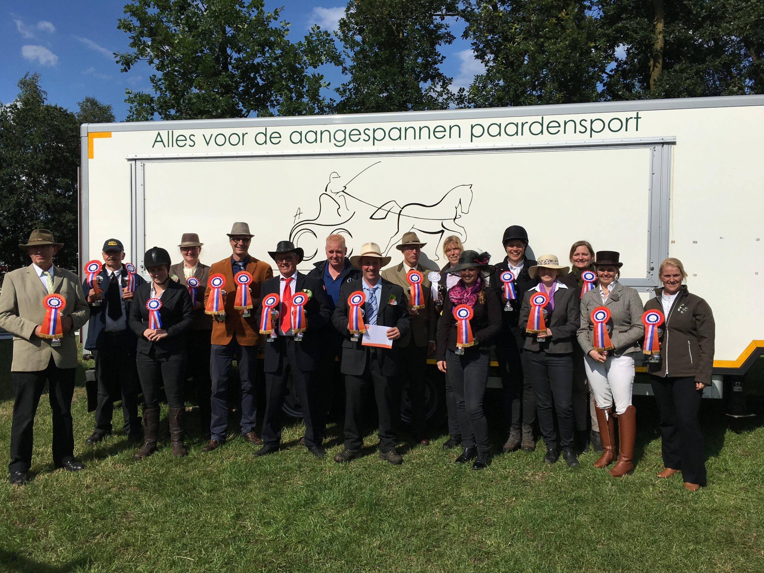 Alle foutloze rijders werden ook kampioen in hun klasse: Paul Vaessen met Ceasar in de klasse L pony’s, Jan Tonnaer met Droomidee in de klasse L paarden, Johan van Kuijk met zijn Shetlander tweespan Amigo en Darleen in de klasse L en ook Arie Dibbits met zijn zilveren WK-Jonge Menpaard 2015 Dynamo reed een foutloze rit in de klasse ZZ paarden.