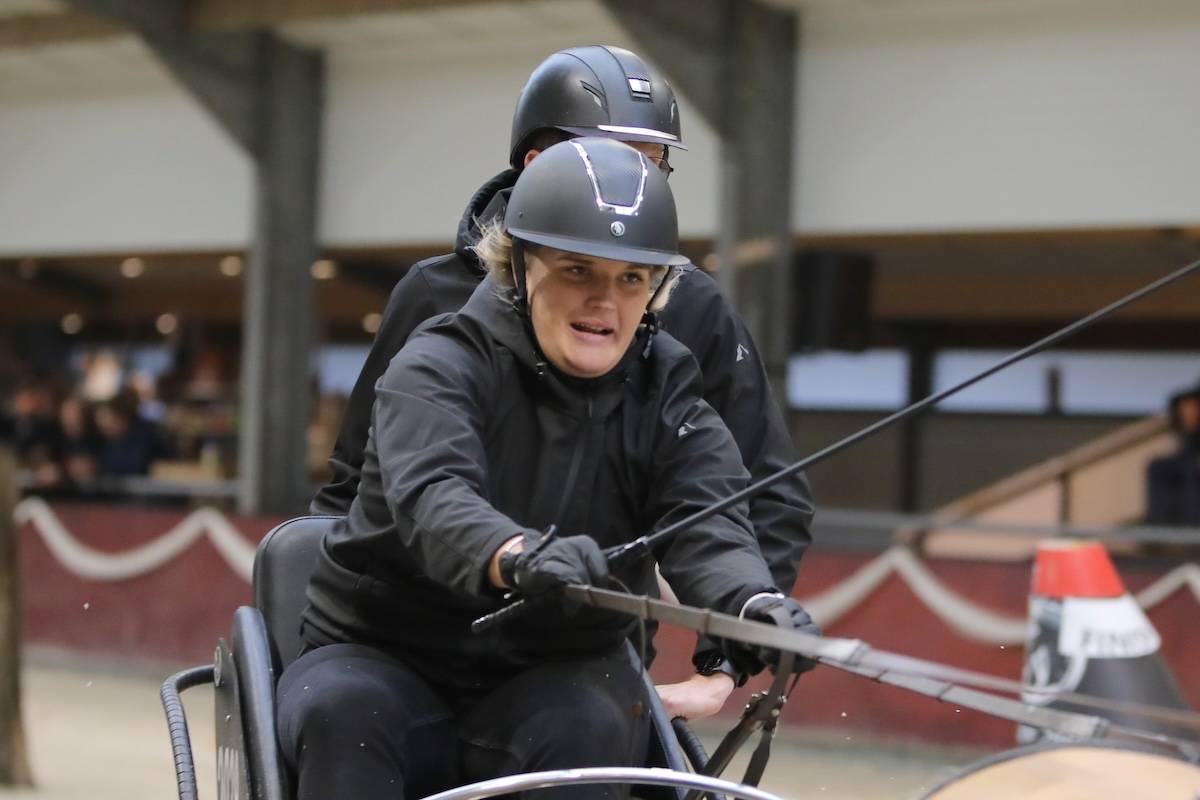 Bij de enkelspan paarden waren de verschillen voor aanvang van de finale ook heel klein. “Slechts 0.76 seconden over twee ronden”, laat Suzanne Roman aan Hoefnet weten. In de finale was ik iets meer dan een halve seconde sneller dan Jaap de Vries, maar voor hem viel helaas een bal. Ontzettend spannend, we zaten alle drie de ronden zó dicht bij elkaar! Ik had ook wel een paar momenten die heel ‘close’ waren, waar ik bijna een bal eraf reed. Gelukkig is dat, met dank aan mijn groom en zus Yvonne van Harskamp, uiteindelijk niet gebeurd. Want door de kleine verschillen weet ik niet of we ons dat had kunnen permitteren!”