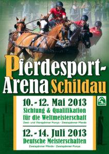 Die nationalen Titelkämpfe der Zweispänner und Pony-Zweispänner werden vom 12. bis 14. Juli in Schildau in Sachsen ausgetragen. Titelverteidiger bei den Zweispännern ist Oliver Böhme aus Grumbach, der im vergangenen Jahr vor heimischem Publikum Deutscher Meister wurde. Zugleich sind die nationalen Titelkämpfe auch eine weitere Sichtung für die Weltmeisterschaften der Zweispänner, die vom 28. August bis 1. September in Topolcianky in der Slowakei stattfinden.Auch die Pony-Zweispännerfahrer kommen nach Schildau um ihren Meister zu ermitteln. Im vergangenen Jahr siegte der damals erst 15-jährige Marco Freund, Sohn von Fahrsport-Legende Michael Freund. Das Turnier beginnt am Freitag mit der Dressur, am Samstag starten alle Gespanne im Hindernisfahren. Erst am Sonntag folgt dann die Geländeprüfung. Das Besondere an den Geländehindernissen ist, dass sie verschiedenen Schildbürgerstreichen nachempfunden sind. Schildau war bereits Austragungsort für Sächsische und Deutsche Meisterschaften sowie für WM-Qualifikationen. Die Organisatoren rund um den Verein der Privilegierten Schützengilde Schildau und die Fahrsport-Arena haben somit langjährige Erfahrungen im Ausrichten großer Fahrsport-Events.