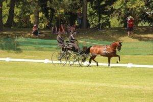 Morgen geht es, nachdem die Vierspänner ihre Dressur absolviert haben, in den Marathon. Nach dem kontrollierten Aufwärmen auf dem Platz mit einem Probehindernis, in dem sich die Gespanne auf die Hindernisfahrt vorbereiten können, warten sieben (bzw. sechs für die Para-Fahrer) anspruchsvolle und toll ausgestattete Hindernisse auf die Teilnehmer.