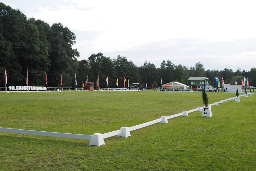 Eine weite Anreise gab es für die meisten Teilnehmer. In diesem Jahr hatte die FN die nationalen Championate der Zweispänner nach Berlin Brandenburg vergeben und zwar nach Drebkau, in der Nähe von Cottbus, gleich an der polnischen Grenze. Die Orts- und Hinweisschilder hier übrigens zweisprachig deutsch/polnisch. Auch auf den ersten Blick gewöhnungsbedürftig aber ein Hinweis auf einen sehr lebendigen grenzüberschreitenden Austausch der Menschen, die in dieser Region leben.