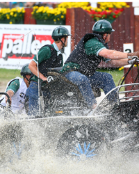IJsbrand Chardon kwam in de marathon in hindernis zeven even in de problemen, maar de tienvoudig kampioen van Aken loste het adequaat op. Hoe anders verging het Boyd Exell op diezelfde hindernis. De Australiër kwam vast te zitten, viel van de bok en zijn twee grooms raakten licht geblesseerd. De Zweed Persson kwam er in de vierde hindernis minder goed vanaf, na een zware val moest hij naar het ziekenhuis worden getransporteerd. De paarden van beide vierspannen werden na een korte vrijheid door omstanders weer in de kraag gegrepen.