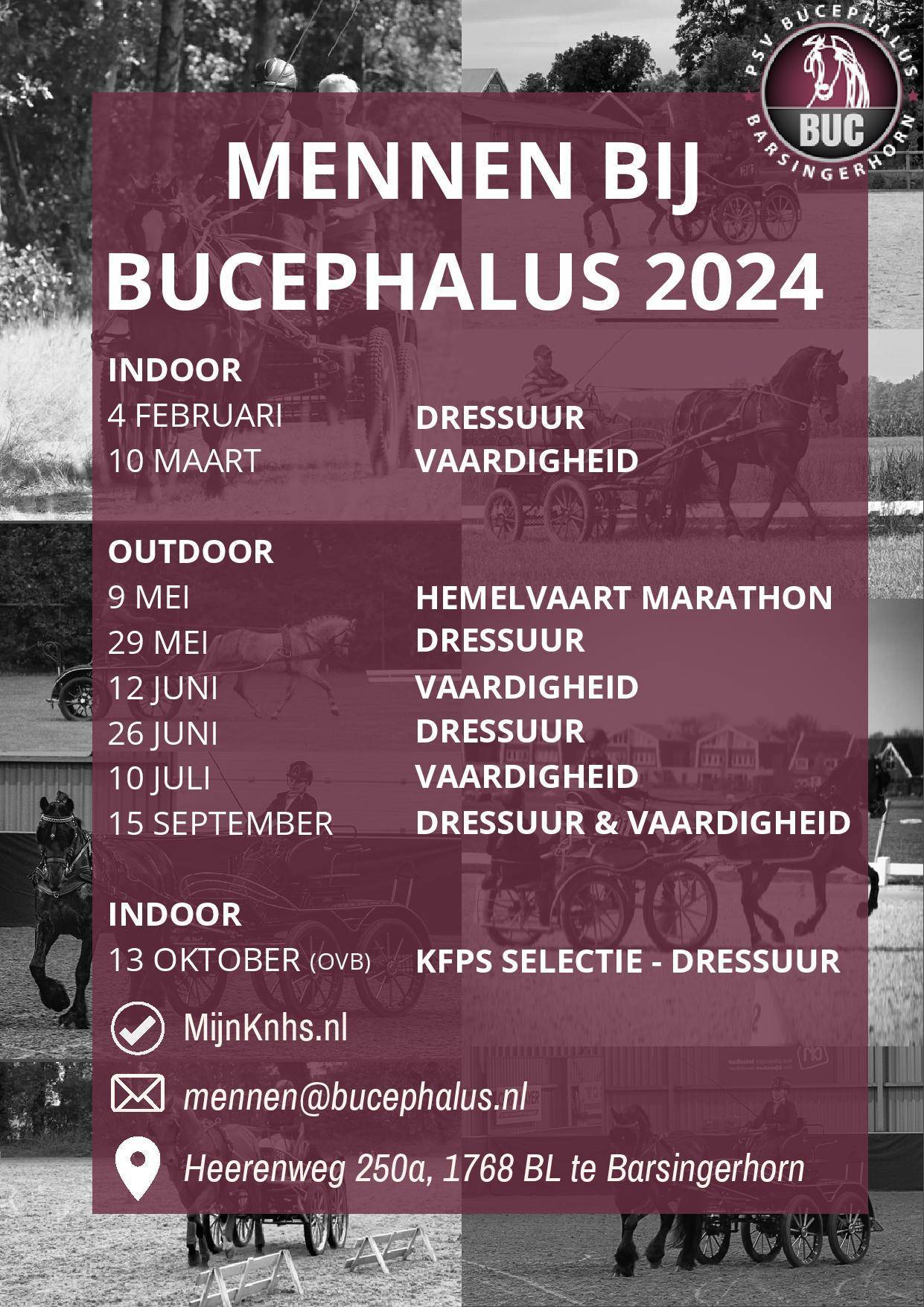 Menvereniging Bucephalus in Barsingerhorn heeft een nieuw concept bedacht voor de dressuur en vaardigheid - wedstrijden die in het outdoorseizoen georganiseerd worden: een Sponsorconcours bestaande uit een reeks wedstrijden met mooie prijzen en er wordt door een hoofdsponsor een Ideal Equestrian - tuig verloot onder alle deelnemers op de finaledag.Het Sponsorconcours bestaat uit vier wedstrijden (twee keer dressuur en twee keer vaardigheid) en een finaledag waarbij zowel dressuur als vaardigheid verreden wordt.