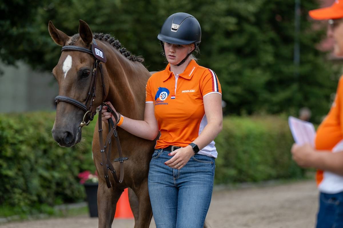 Vandaag vond de veterinaire keuring plaats. Alle Nederlandse pony’s en paarden zijn goedgekeurd dus het EK kan beginnen. Eén Britse pony, van Charlie Parker King, moet morgen om 08.00 uur nog een keer voor de keuringscommissie verschijnen.
