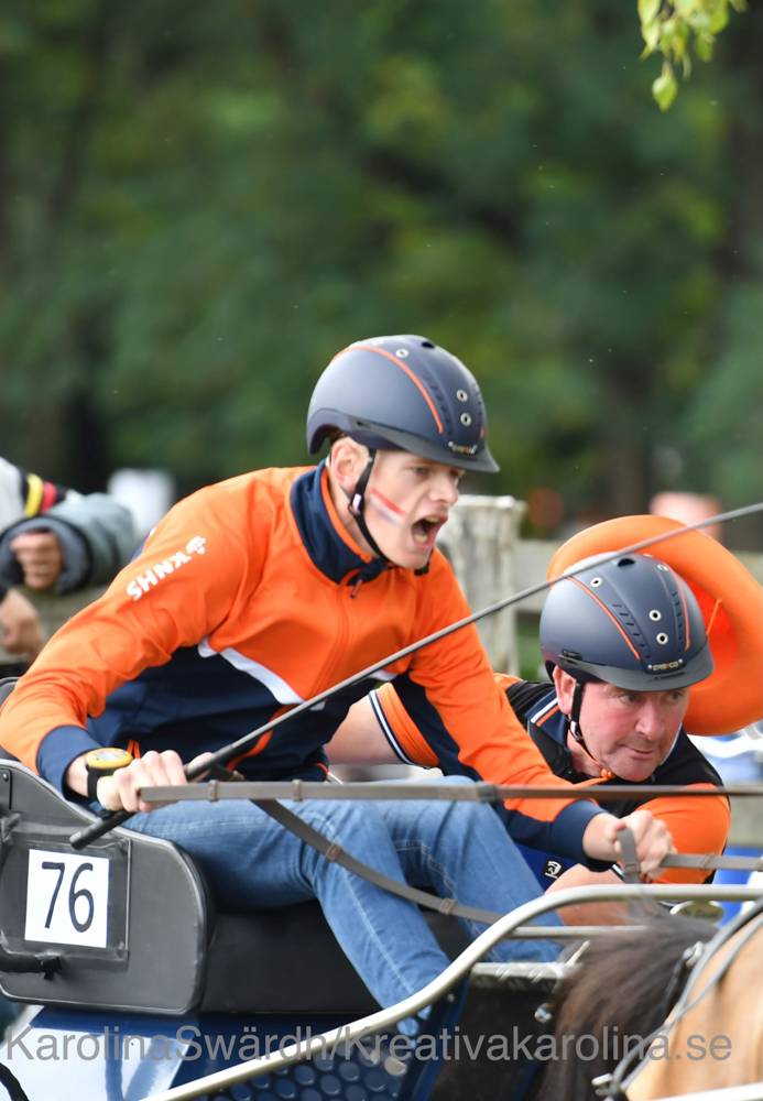 Bij de Young drivers was het genieten van razendsnelle combinaties. Anouk van de Beek en Dirk Bastiaansen waren ontketend. “Dirk lijkt wel een formule 1 coureur,” zegt Hans Zumbrink. “Hij reed heel hard, maar heel stijlvol en het ziet er zo ontspannen uit!” Met een voorsprong van ruim 4 punten en de snelste tijd in 4 hindernissen won Dirk de marathon overtuigend. Hij staat nu op plaats 3 in het individuele tussenklassement. In die top 3 staat het heel dicht bij elkaar, op minder dan een bal verschil. De ervaren Duitse Lisa Maria Tischer leidt het klassement, nadat ze tweede werd in de marathon. Anouk van de Beek staat met haar Happy nu in zilveren positie. Ook zij reed een ijzersterke marathon. Nadat ze in hindernis 1 hard tegen een paal reed, herpakte ze zich goed en werd uiteindelijk vierde.