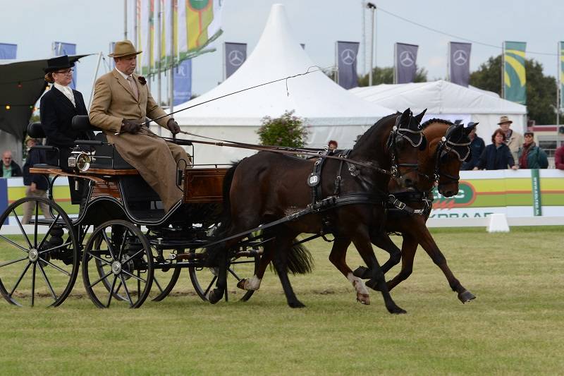 De Duitse tweespanmenner Jan-Felix Pfeffer verraste met een mooie proef, die werd gewaardeerd met 42,18 strafpunten. Regerend wereldkampioen tweespan pony’s Ewoud Boom (Nijkerk) kon uit zijn span niet de gebruikelijke harmonie toveren. De rechterpony Romeo was te kijkerig en gespannen en liep er daardoor teveel uit. “Ik ben niet tevreden, al meer dan een jaar rijd ik onder 40 strafpunten en nu 46. Maar er komen nog twee onderdelen, dus ik kan het nog goedmaken”, aldus Boom, die iets meer dan 4 punten moet inlopen op Pfeffer.