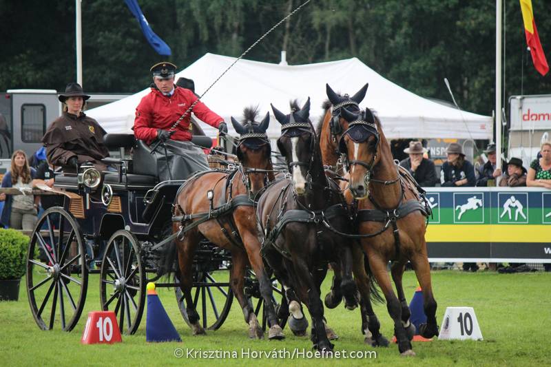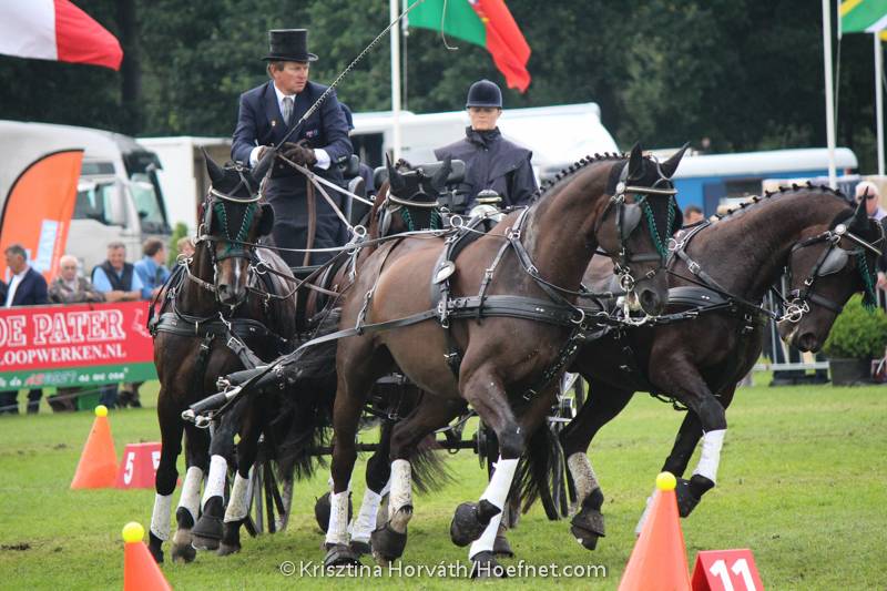 Leek het zaterdag na de marathon nog dat Chardon op rozen zat met een riante voorsprong, in de vaardigheid maakte de menner uit het Zuidhollandse Den Hoorn het toch nog even spannend toen hij bij het derde poortje een volte moest rijden. Iets wat hem niet alleen vijf strafpunten kostte, maar ook nog eens zo’n 12 seconden aan tijd. Ook op hindernis acht had hij een balletje. Chardon: “Mijn paarden schoten ineens naar rechts, waardoor weet ik niet precies. Wat ik wel wist was dat ik alle zeilen bij moest zetten om binnen de tijd te blijven en mijn nationale titel veilig te stellen. Ik ga natuurlijk niet mijn kampioenschap weggeven.” Ondanks dat het de 26e keer is, is het voor Chardon geen normaliteit om de titel te winnen! “Koos de Ronde en Theo Timmerman behoren beide bij de top vijf van de wereld en als je daarvan wint, blijft dat een prestatie om trots op te zijn”.