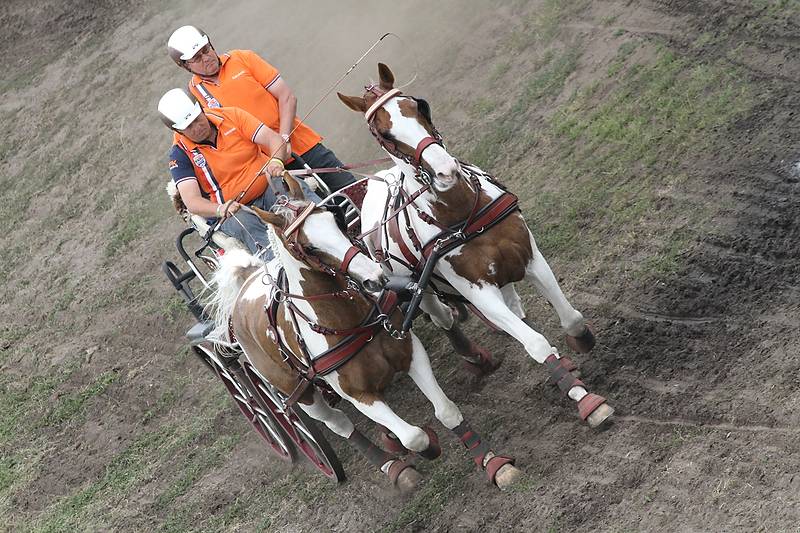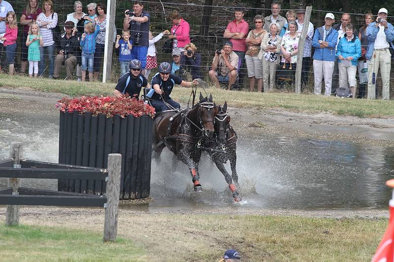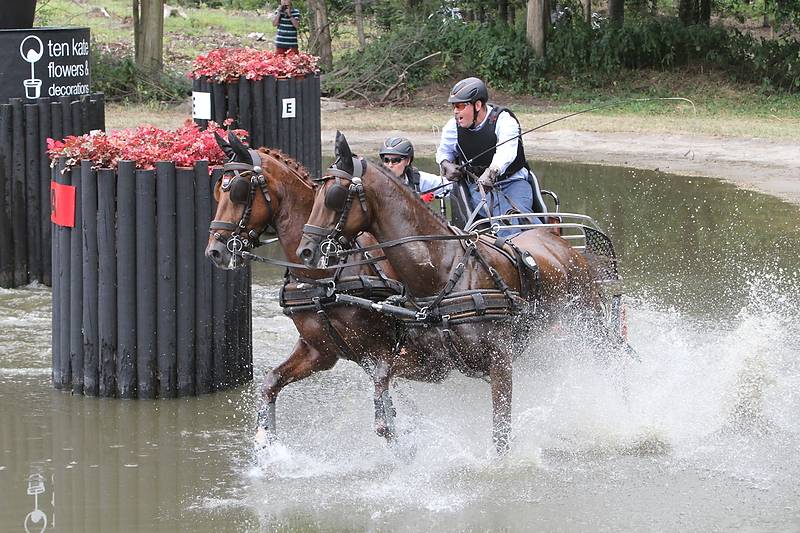 With less than a ball difference Tom Engbers is now in second position. Dressage winner Mieke van Tergouw had an off day. She started rather good in the marathon, but in the obstacles 3 and 7 she lost too much time. To make matters worse, her stopwatch didn’t work and as a result of that she became time faults in phase E. Overall she dropped at the fifth position. Bad luck also for Carlo Vermeulen. He grazed a pole in obstacle 7 and capsized. “It is more than ten years ago that this happened to me.” Tomorrow he is the first pair driver in the cones.