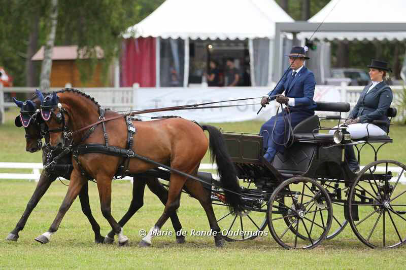 Another Dutch victory in Saumur for pair driver Stan van Eijk, who won the three-star Horse Pairs Class. Van Eijk finished in fourth place in the dressage, which was won by French driver Franck Grimonprez. In the marathon, Van Eijk finished second behind Frédéric Bousquet and took the lead in the standings. Grimonprez gave Van Eijk some air in the cones competition when he made a few mistakes but like Chardon, Van Eijk was determined to stay clear and managed to do so, which confirmed his first place.