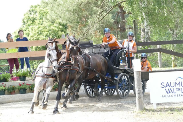 The Netherlands-based Canadian driver Kelly Houtappels-Bruder performed excellent this weekend in Saumur with her lovely 10-year-old Oldenburg gelding Flip. After the third place in dressage, Kelly finished third in the marathon and moved up to the second place in the standings, which was headed by Marion Vignaud. The difference between Houtappels-Bruder and Vignaud, who started with two horses, was minimal before the Cones (0,30 points). In the final obstacle driving competition, Kelly was therefore the last driver in and drove the course beautiful without any faults within the time allowed. This resulted in her second win in a row in Saumur: “Saumur is just a very nice competition with a pleasant and quiet atmosphere. The course design was completely different than in Kronenberg and I could drive Flip nice and smooth through the obstacles. My next competition is Chablis and we are gradually preparing for the World Championships in Kronenberg at the end of August,” said Kelly who was very pleased with Flip’s performance.