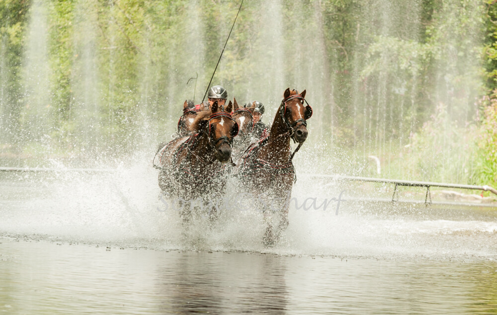 With a slow start and fifth place in the dressage, Georg von Stein made up a lot of ground by winning the marathon: and this was with a borrowed carriage as his own equipment is in a transport container on the way to Tryon. With just 0,47 penalty points in the cones von Stein celebrated his birthday early with a fourth career German title. The silver medal went to Dirk Gerkens and Rene Poensgen won bronze.