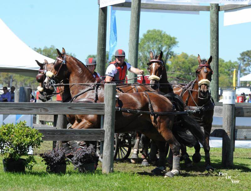 This year, Live Oak International will host the USEF Combined Driving National Championships for the Advanced Four-in-Hand Horse and Advanced Pair Horse, as well as offer classes at the Intermediate level. Driving begins with Dressage on Thursday and Friday, continues with the Marathon on Saturday, and concludes with the Cones phase on Sunday, March 10. Co-president Chester Weber, will be chasing his 16th Four-In-Hand national title!