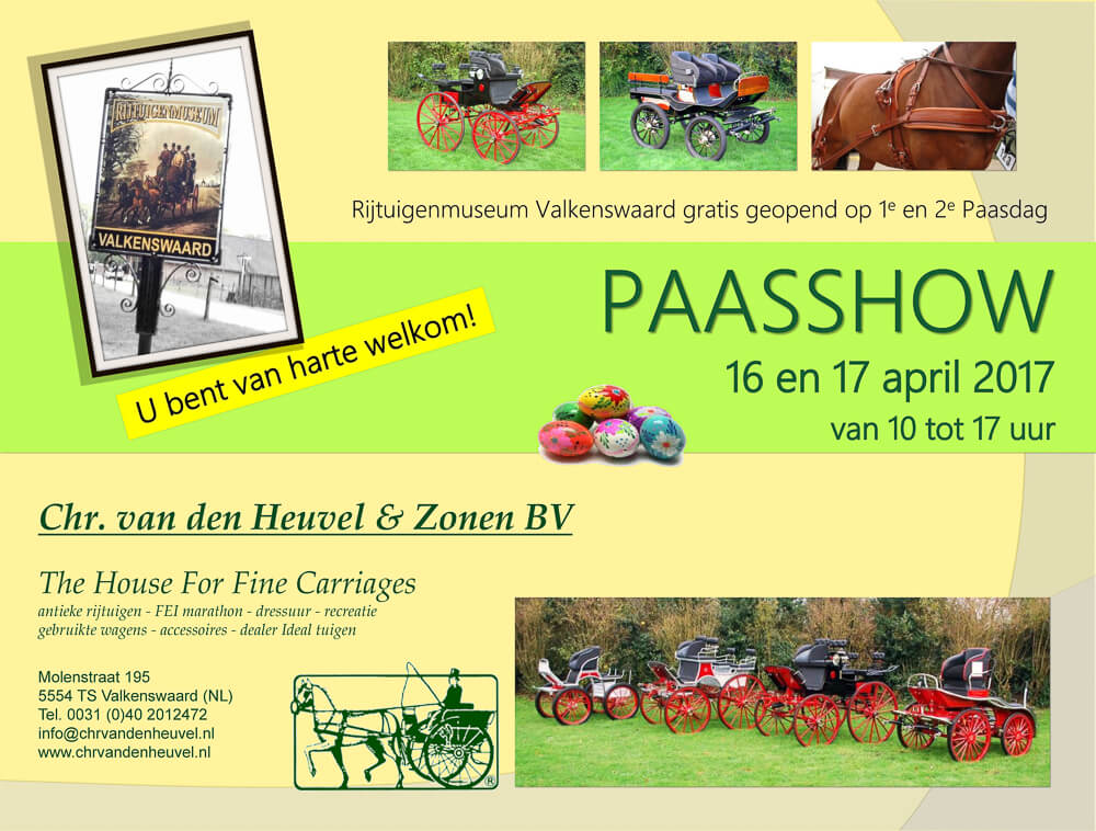 Carriage manufacturers Chr. Van den Heuvel and Van der Wiel Harness open their doors to the public during Easter.Both companies are open on Sunday 16th April and Monday 17th April from 10.00 to 17.00 hrs.