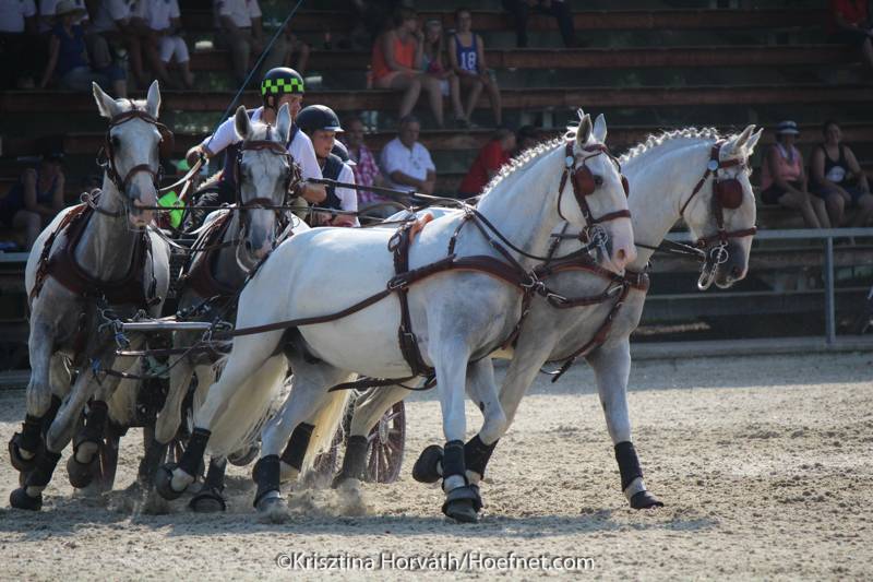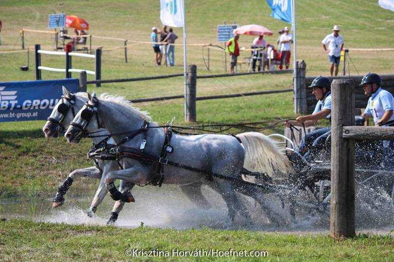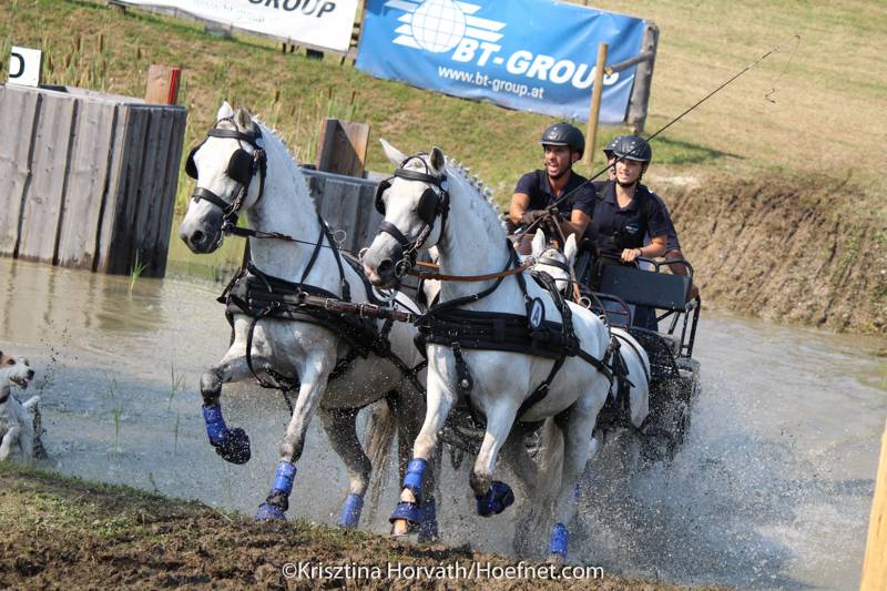 Despite the enormous heat today at the Lipizzaner Stud Farm in Piber, all horses were fit when they passed the finish line. The marathon counted seven obstacles and was exciting to watch from the tribune, where the spectators were able to follow most of the obstacles whilst enjoying the shade.