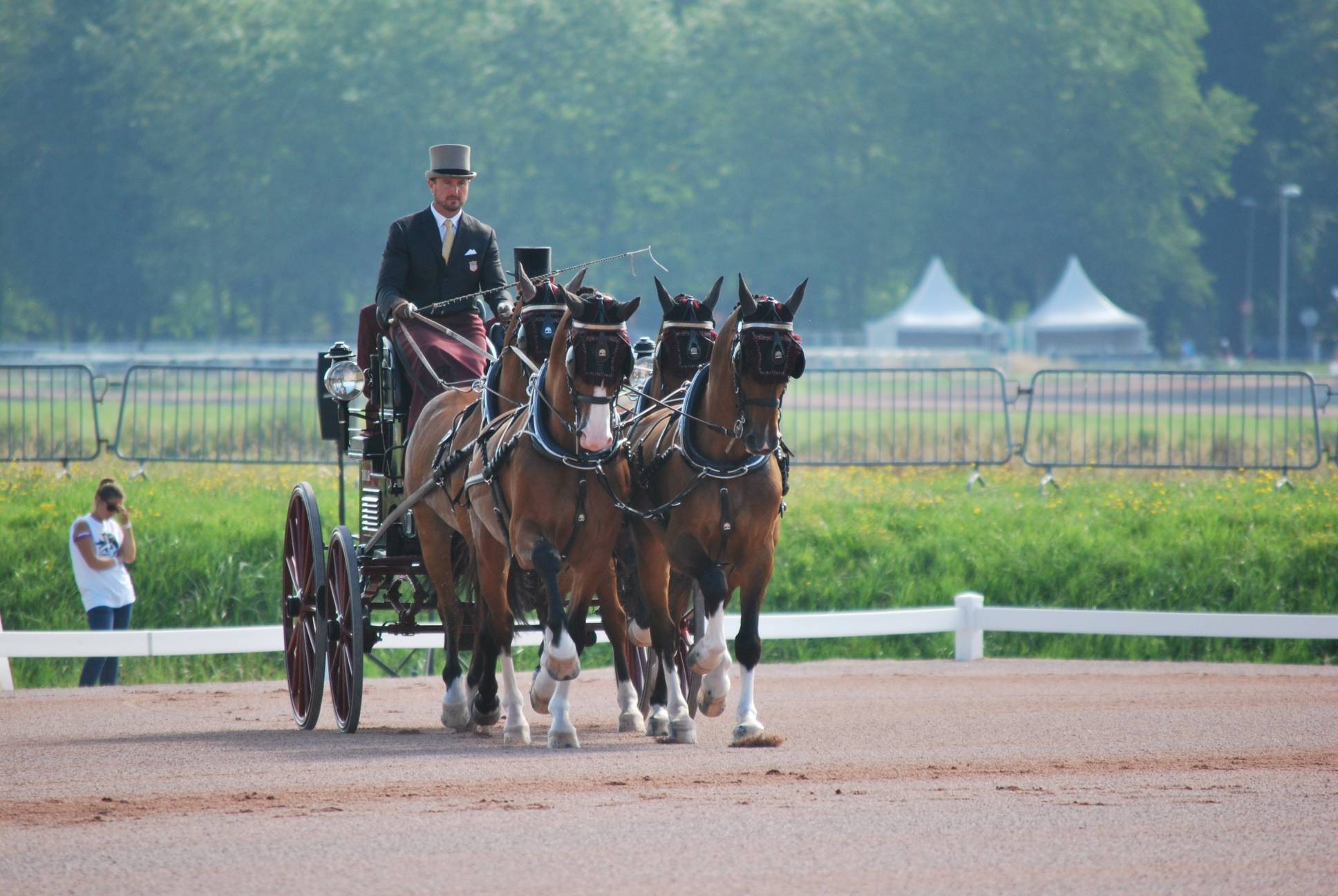 Nine-time U.S. national driving champion Chester Weber scored yet another win in the dressage phase at the CAI-A 4 Caen, in Caen, France. Donimating the field with a score of 34.63, this win leaves Weber undefeated in the dressage phase during his 2013 European season. Weber finished second in the marathon behind Dutch driver Hans Heus and remained in the lead with a big advantage to his 11 oponents. One knock down and minor time penalties did not endanger his victory at the FEI Alltech WEG 2014 test event in Caen.