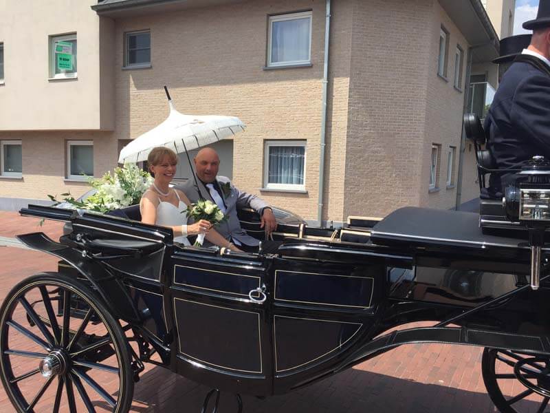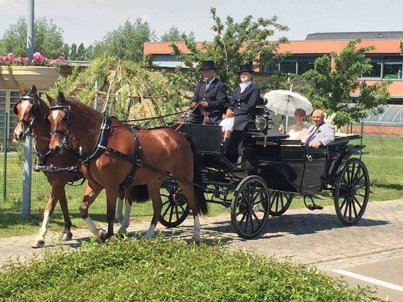 Gerard and Valerie celebrated with family and friends with a reception in Avelgem. Such a day of course included horses as the bride and groom were driven by Belgian driver Luc Vandenbielle.