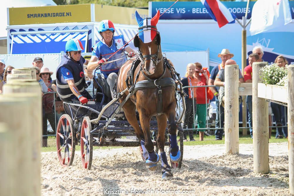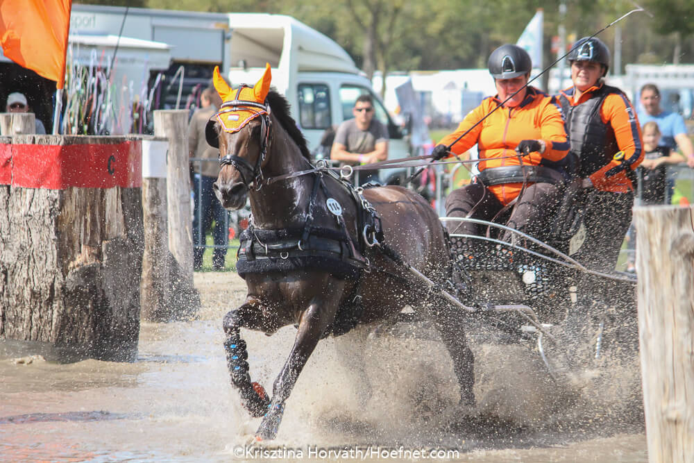 The weather could not have been better. A bright sunny day, but not excessively hot. The crowds turned out in huge numbers to cheer on their favorite competitor. And cheer they did ! There was a wave of orange shirts following the eight Single drivers and six Para participants from The Netherlands. From obstacle to obstacle, with flags waving and loud encouragement, it was not difficult to identify the supporters from the host country.