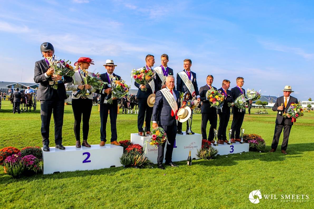 The Hungarians are usually good in cones driving. They proved it once again in championship, because Fekete’s compatriot Tibor Nagy (not driving for the team) finished second with only time errors. Stan van Eijk was not so much looking forward to the cones yesterday. He had to do it without Zorac again today. The little fanatic Jones had to work with dressage horse Deniro. But Stan had taken a good look at all the difficult lines beforehand and delivered an unprecedented performance. He rode on the edge. In all the tricky turns, he turned as short as possible and proved that it was indeed possible to drive within the time limit. He even had 5 seconds left! He only got a ball down on gate 4 did a ball, what brought his total to 3 penalty points. He was 3rd in the cones and finished in 6th place individually. “Too bad about that little ball,” he says. “I am happy with the result. Of course I hoped that things would have turned out differently, but it’s okay.”