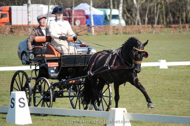 There were quite a few horses that stood out in the single horse class. Swedens Karin Söderqvist brought out Lukas, a small cold blood with a unique colour and light muzzle. The pair drove a strong test with nice extensions for a seventh place and 51,47. Christian Provoost drove Umiro after a year struggling with health issues and finished in fifth place. Also back from a long break due to injury was Wilderoos and Frank van der Doelen. 'Roos was a bit strong.' commented van der Doelen, 'but I'm so happy that she is back.' Apart from Siebers and Pestman the only other combination to score under the fifty penalty points was Jozsef Farkas (Hungary) and his spectacular horse Roderick who ended up third.