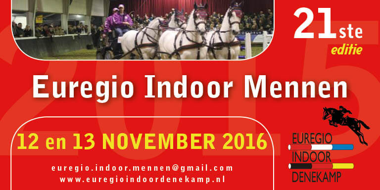 Euregio Indoor Denekamp staat op 12 en 13 november in het teken van de 21ste editie van het Menspektakel Euregio Indoor Mennen met topmenners uit Nederland, België en Duitsland.