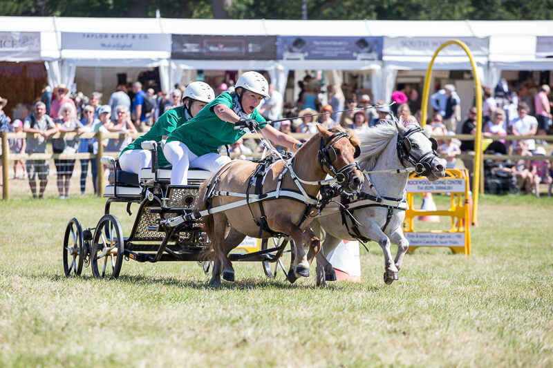 Day one, was split into two groups, allowing a mixture of pairs, singles, small and large ponies to drive around a tight and challenging course. The morning times were quick but superseded in the afternoon by drivers putting in times of 54 seconds. The morning session was won by Lindsey Doran and Jane Hendy was hot on her heels by winning the afternoon session. Lindsey went on to put in the most incredibly fast times and consistency for the next 3 days with her super star pony Tonic – famous for his stag like leaps in the air! and her small pony pair Dot not Dash.