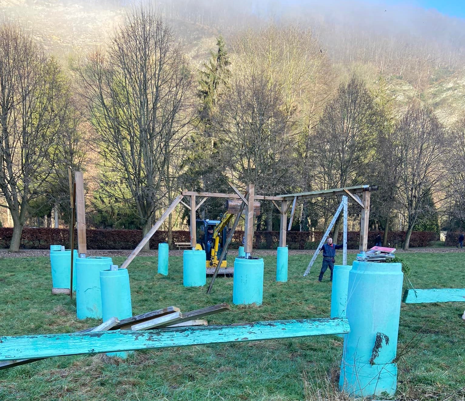 Het organisatieteam is bezig met het afbreken van de hindernissen