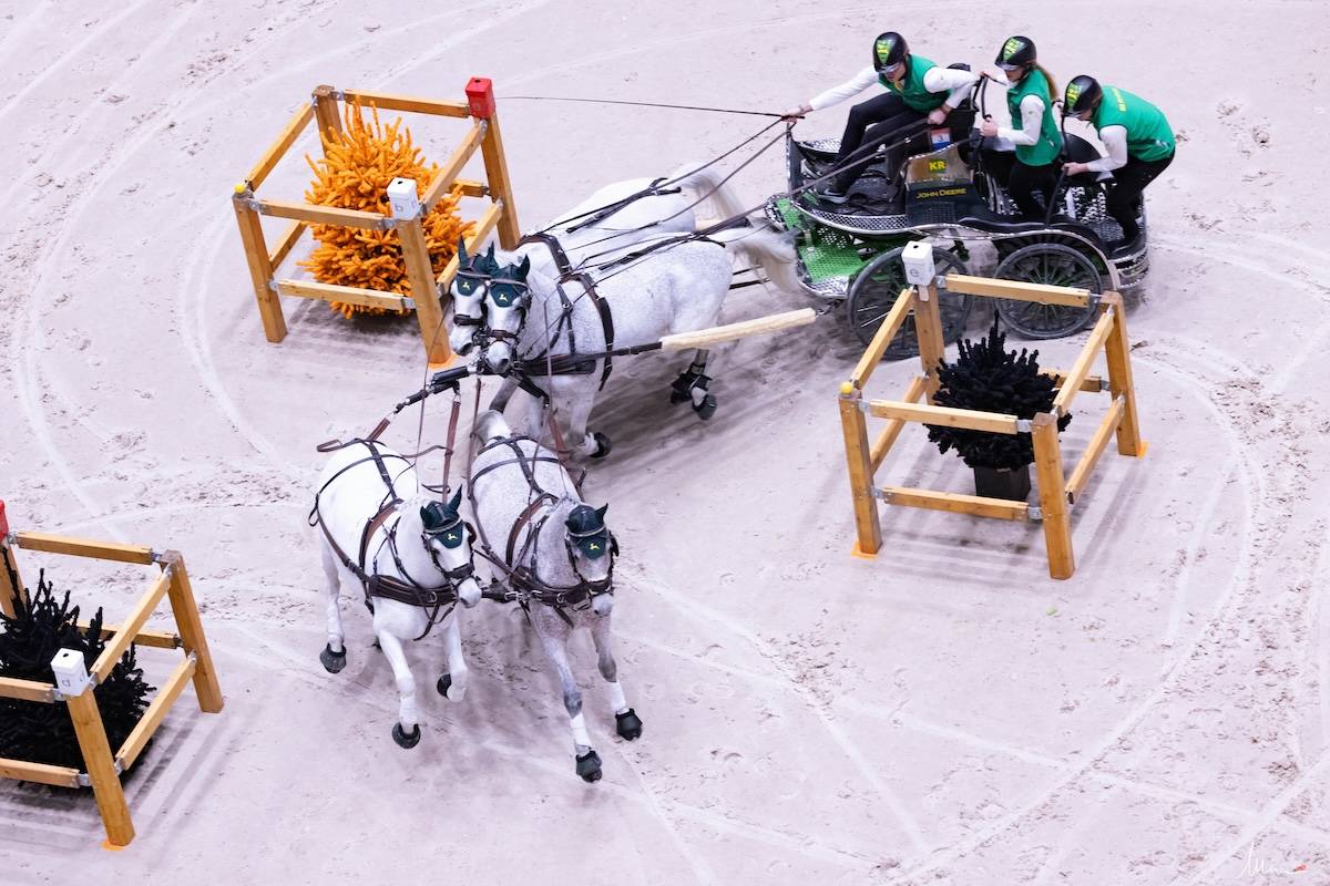 Koos de Ronde was in de eerste ronde snel, al leek hij heel even de weg kwijt bij het inrijden van hindernis vier en een kleine correctie in hindernis tien, toen zijn paarden onderweg van de A naar de B bijna door de E wilden. In de tweede Ronde ging Koos opnieuw als een speer van start. Helaas nam hij de draai in de speedbox iets te kort, waardoor er een bal viel. Ook in hindernis 10 viel een bal. Daarna gaat hij als een speer naar de finish waardoor hij boven Bram eindigt.