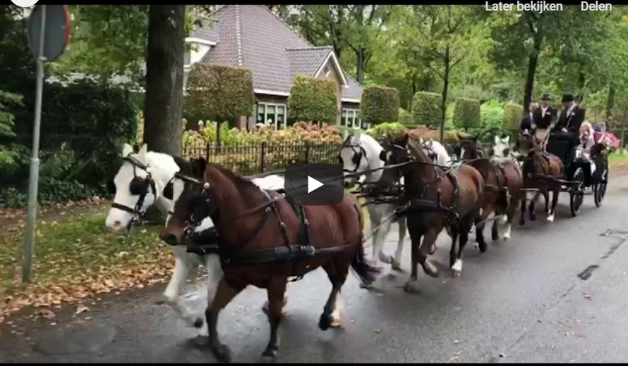 Vrijdag 18 oktober stapten ponymenners Gerco van Tuijl en Marjolein Jansen in het huwelijksbootje. Hun pony's waren uiteraard ook van de partij en hoe!Zes pony’s van Gerco (die recent nog de vierspanrubriek in Utrecht won) en de twee pony’s van Marjolein werden in het achtspan (!) gezet. Een prachtige aanspanning met aan één kant schimmels en aan de andere kant donkerbruine pony’s. Marjoleins clubgenoot Aart van de Kamp jr. reed het stel. Tijdens de rit in de koets kon Gerco het uiteraard niet laten om even over de schouder van koetsier Aart te kijken hoe het liep.