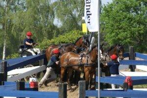 Na afloop van de demonstratie wordt de rubriek enkelspan paarden verreden die met een twintigtal combinaties uitstekend bezet is.