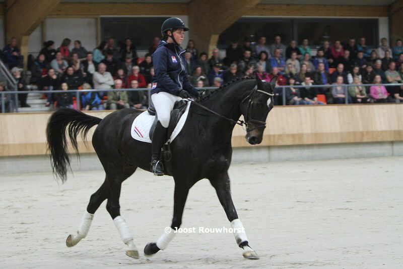 ‘Daarnaast zitten we nu in het tweede jaar van de MBO niveau 4 paardensport opleiding van het Lentiz. Vier dagen in de week zijn er ongeveer 14 studenten van deze opleiding op ons bedrijf. Volgend jaar zal daar nog een nieuwe klas bij komen. De studenten krijgen voor hun opleiding les op onze manegepaarden. Mede door de vrij strenge intakecriteria van de Lentiz opleiding en de intensieve begeleiding, is het niveau van rijden hoog. We verwachten dat deze leerlingen in de toekomst een meerwaarde kunnen zijn in de opleiding van jonge sportpaarden, zowel bij ons als bij de bedrijven waar ze stage lopen.’