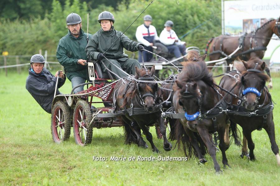 Ook bij de ponyvierspannen was het Nederland die de boventoon voerde. Tweevoudig wereldkampioen Bram Chardon startte voor het eerst dit seizoen zijn Welsh-ponies, won de dressuur en de marathon en twee balletjes in de vaardigheid brachten zijn eindoverwinning niet in gevaar. De Belgische Tinne Bax werd tweede, op gepaste afstand gevolgd door Joey van der Ham.
